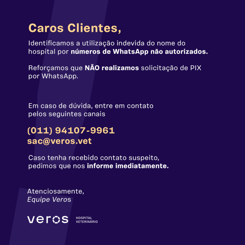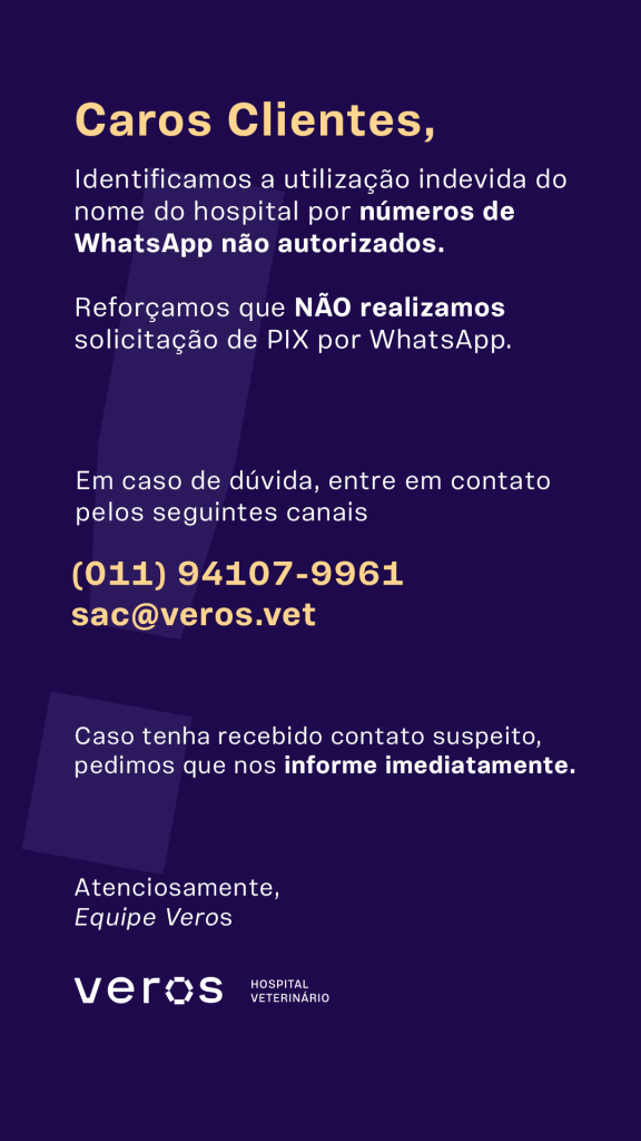O Veros ajuda a evoluir a ciência e revolucionar o conceito de cuidar na medicina veterinária, unindo qualidade de vida e saúde para além de procedimentos. Relações de empatia, fácil acesso à nossa equipe e ao hospital, transparência e comprometimento com todos que fazem parte da família – tanto da nossa, quanto da sua.