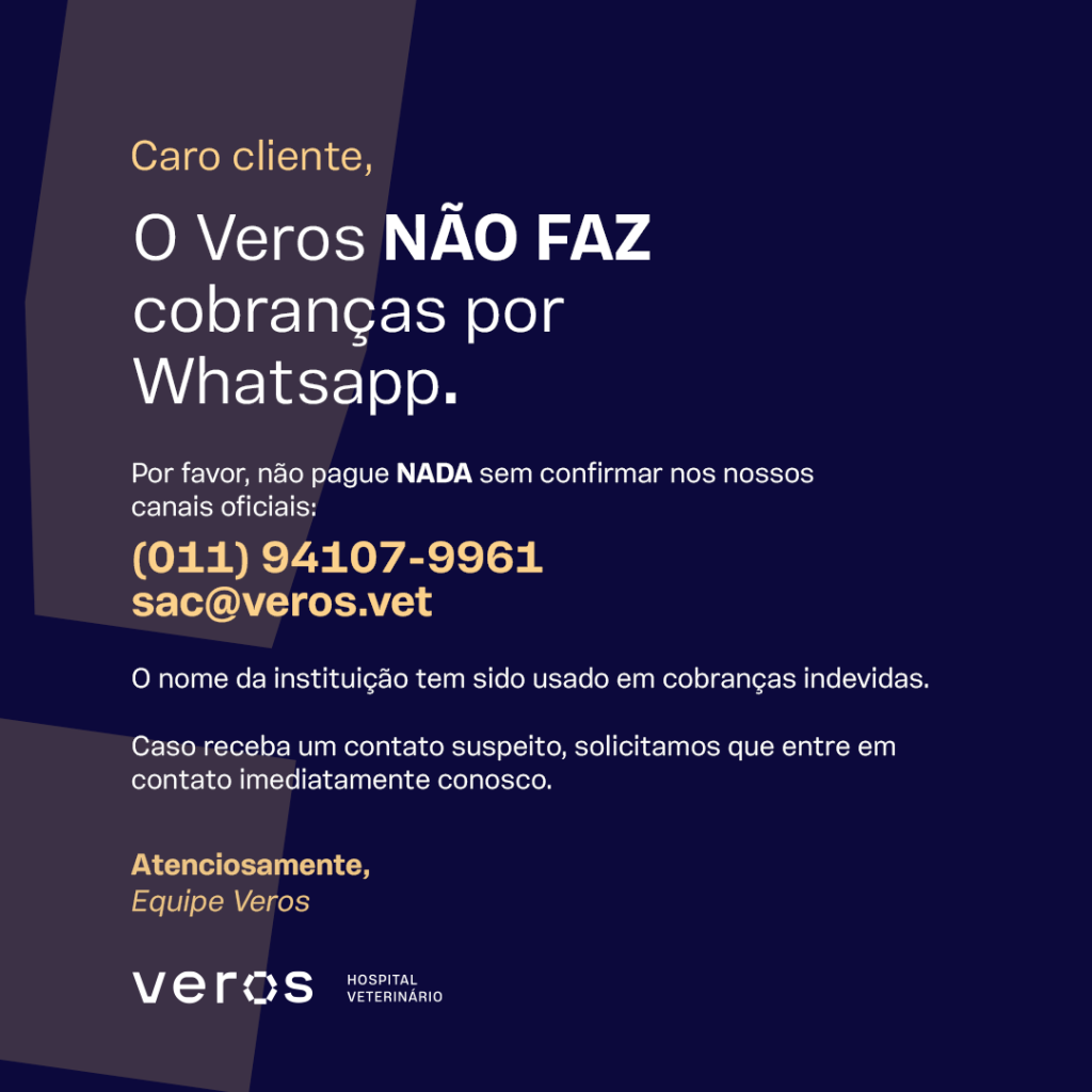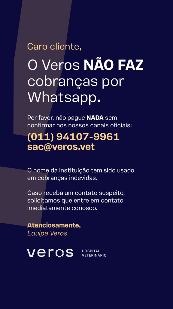 Receba materiais especiais do Veros para orientar o dia a dia com seu pet, dicas relevantes para diversas situações e informativos sobre o nosso Hospital Veterinário em São Paulo.